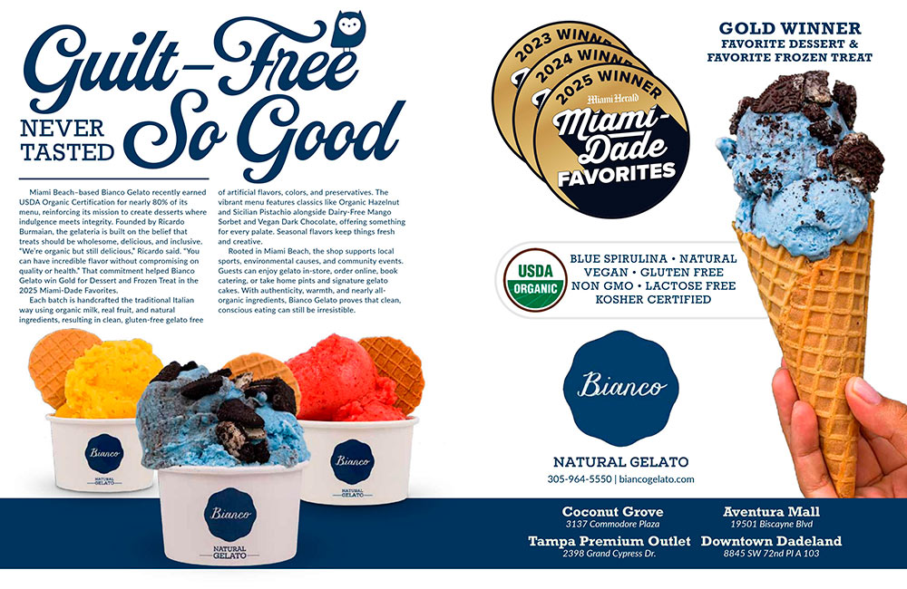 Twelve years later, our essence remains the same because we believe that we are what we eat. Therefore, we always offer superior quality, healthy, and tasty products, along with excellent staff to provide the best service in our stores. All of this is recognized by the community that has embraced us and, year after year, has increasingly honored and awarded us. Being named Best Frozen Treat 2025 makes us very proud, demonstrating that we are on the right path with the best gelato in Miami.